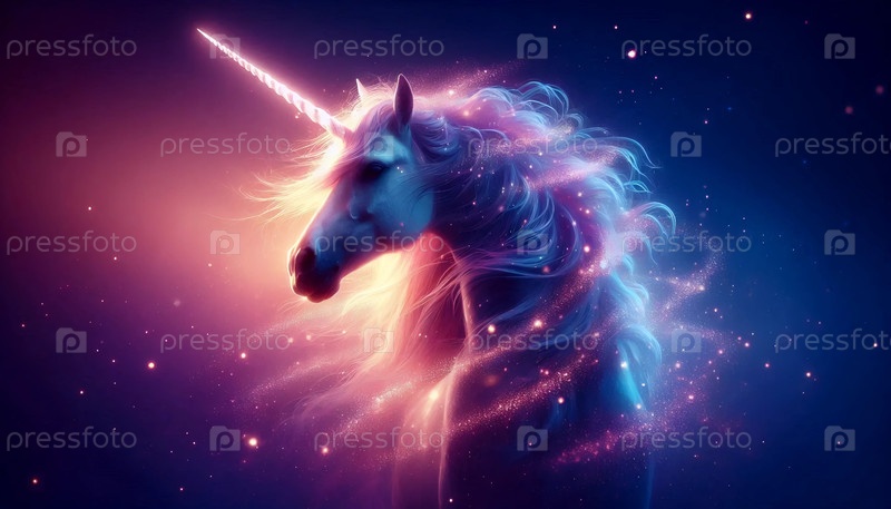 Единорог со светящимся рогом, Ai generated image