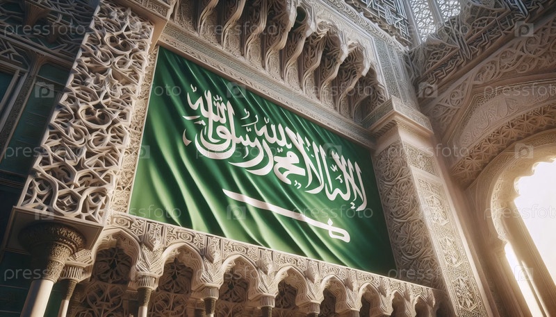 Саудовский флаг в исламских геометрических узорах, Ai generated image