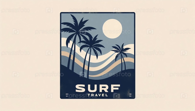 Винтажный дизайн плаката для путешествий на серфе, Ai generated image