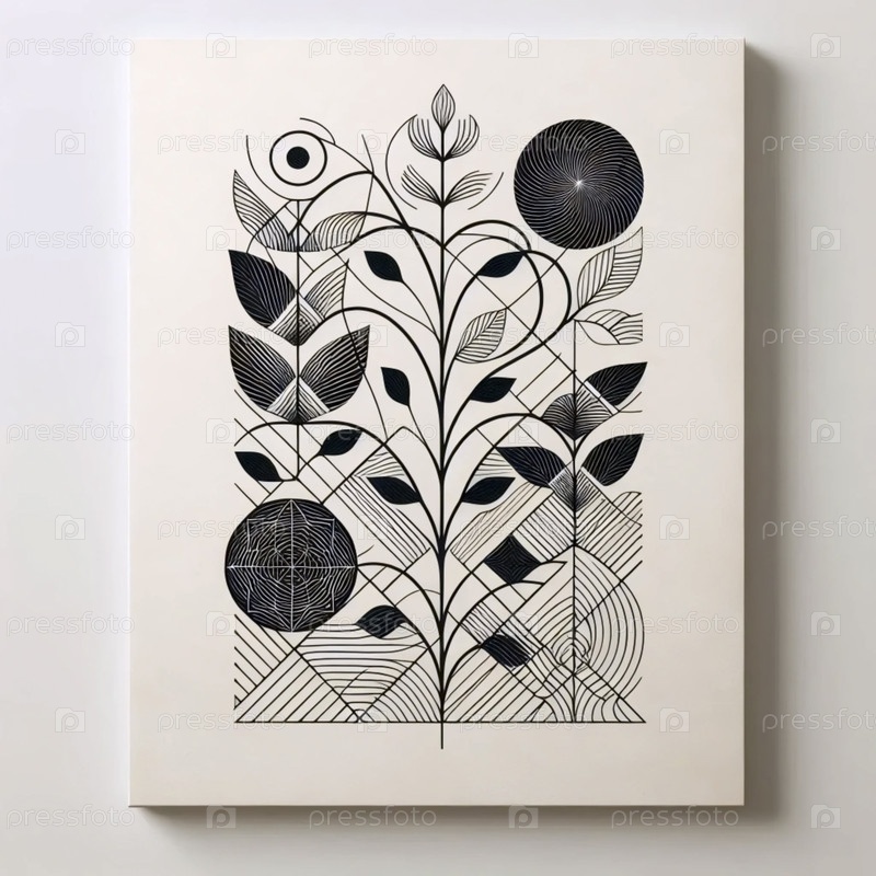 Скандинавская черно-белая абстрактная печать, Ai generated image