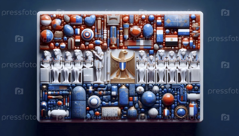 Египетский флаг в фараонских артефактах и иероглифах, Ai generated image