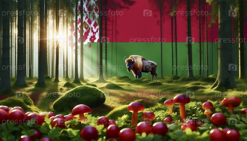 Белорусский флаг в заповеднике первобытных лесов и зубов, Ai generated image