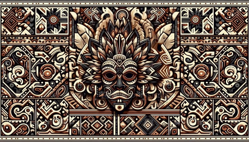 Смелая племенная маска и символ с бесшовным узором, Ai generated image