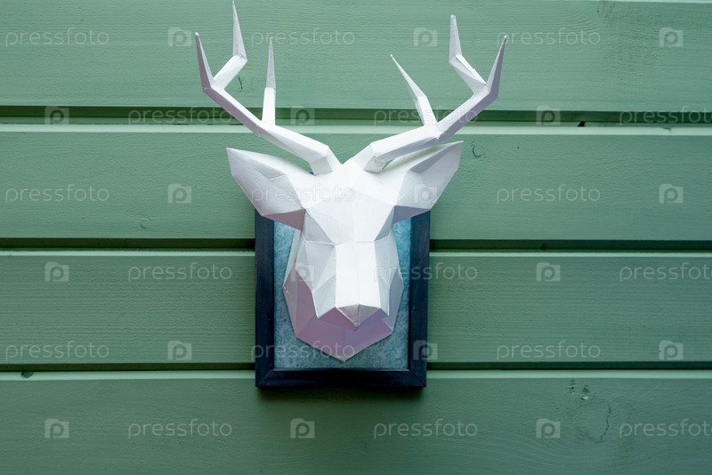 Декоративные рога оленей, висящие на стене в гостиной или спальне