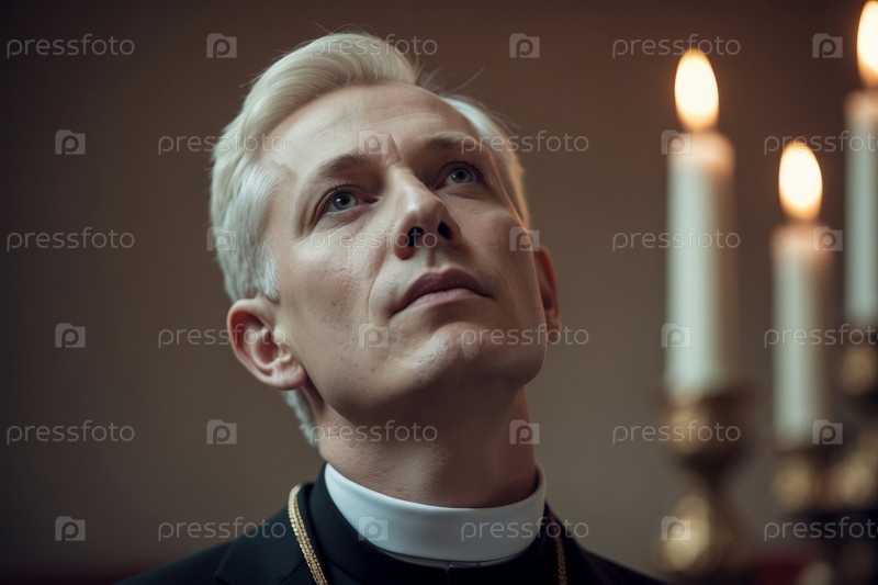 AI Generative Man священник молится о традиционном христианском празднике Candlemas Day в церкви