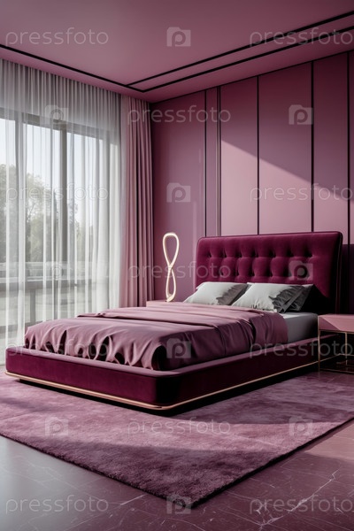 Уютный интерьер Спальня Квартирная комната Розовый цвет, Комфортный дом Дизайн современного дома AI Generative