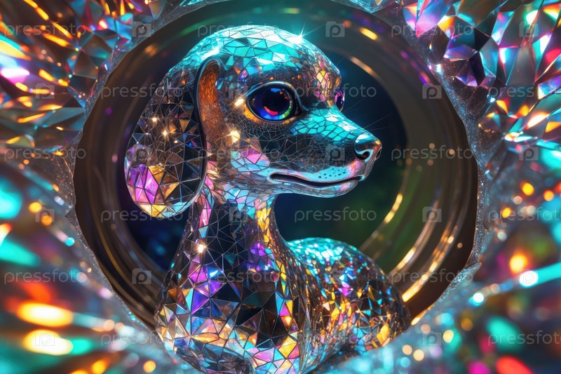 Фантастическое мифологическое животное из сказки, домашняя собака с механическими частями тела