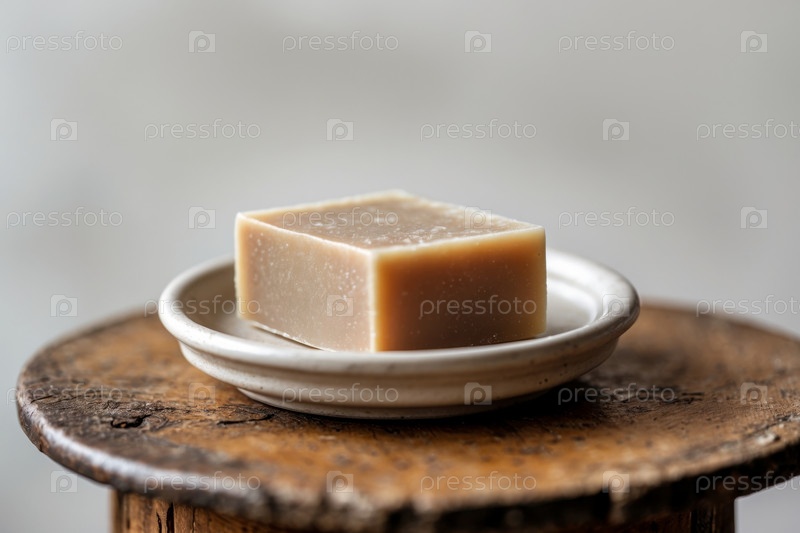 AI Generative Bar piece natural organic aromatic cosmetic handmade soap на тарелке на деревянном фоне