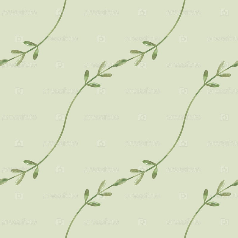 Минималистический бесшовный рисунок тонких ветвей на светло-зеленом фоне Диагональный ботанический орнамент с зелеными листьями Фон для упаковки бумаги, обоев, текстиля и посуды