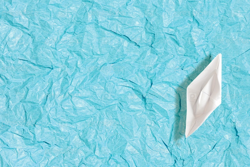 Бумажная лодка на свернутом бирюзовом фоне в минимальной игривой композиции