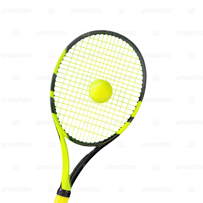 Изолированная теннисная ракетка с желтым теннисным мячом на прозрачном фоне