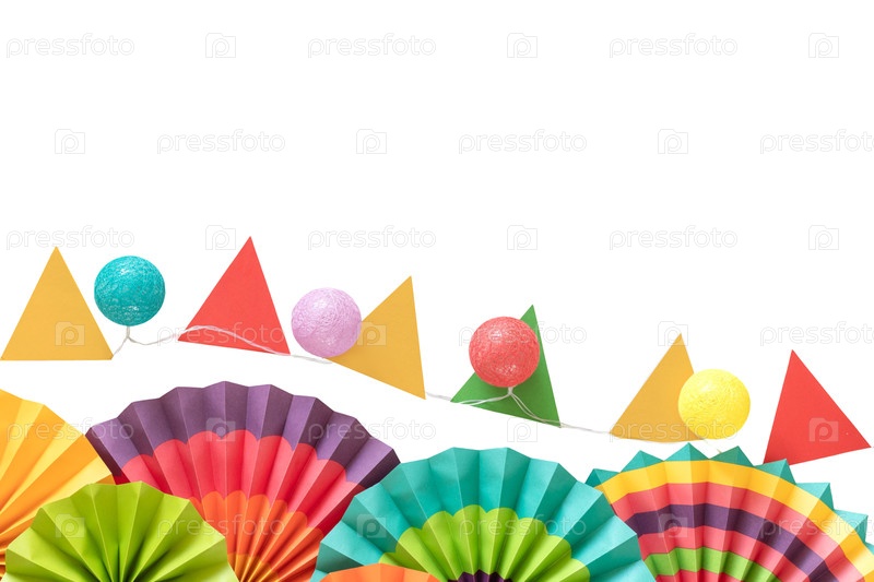 Изолированные красочные бумажные вентиляторы и декорации для вечеринки