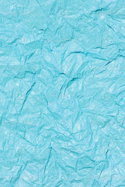 Скрученная текстура бирюзовой бумаги с морщинистой поверхностью и тонкими светлыми тенями