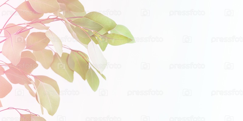 Мягкие зеленые листья с розовым светлым перекрытием на минимальном белом фоне