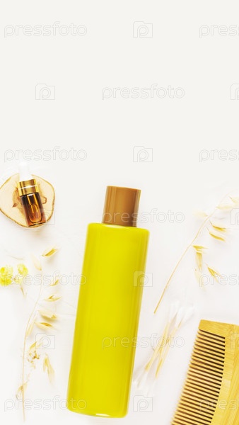 Желтая бутылка для ухода за волосами с гребнем
