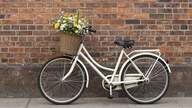Винтажный велосипед с корзиной диких цветов A