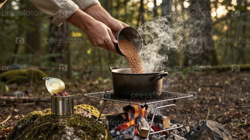 Приготовление пищи на костре в лесу