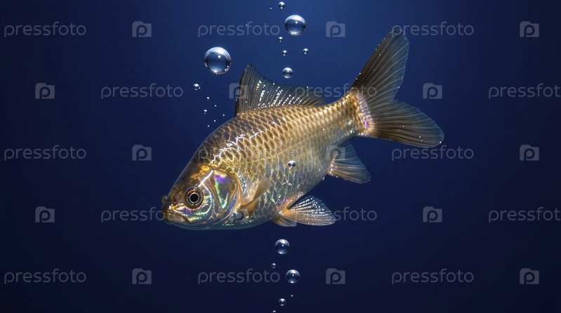 Радиантная золотая рыбка плавает под водой