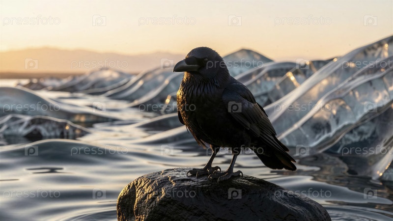 Величественный Ворон в залезе Айсберга