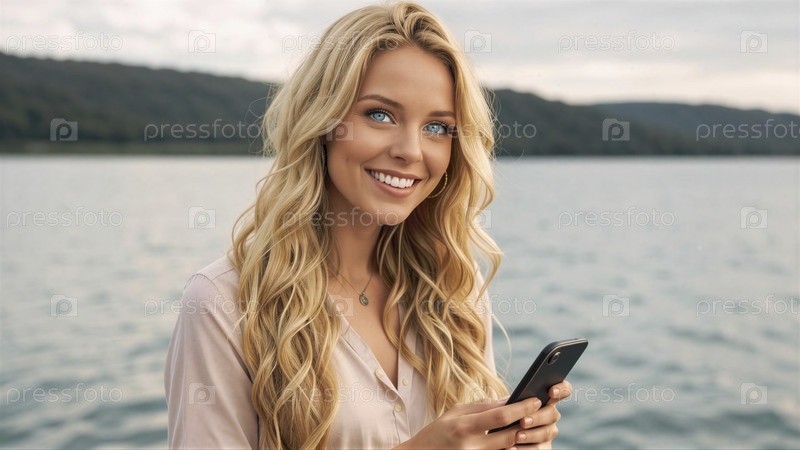 Спокойные моменты у озера со смартфоном в руке