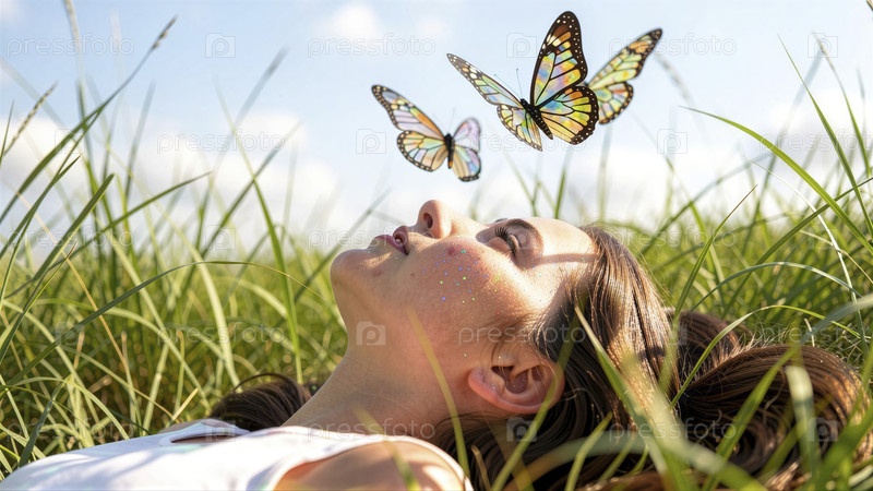 Спокойное спокойствие в траве с бабочками