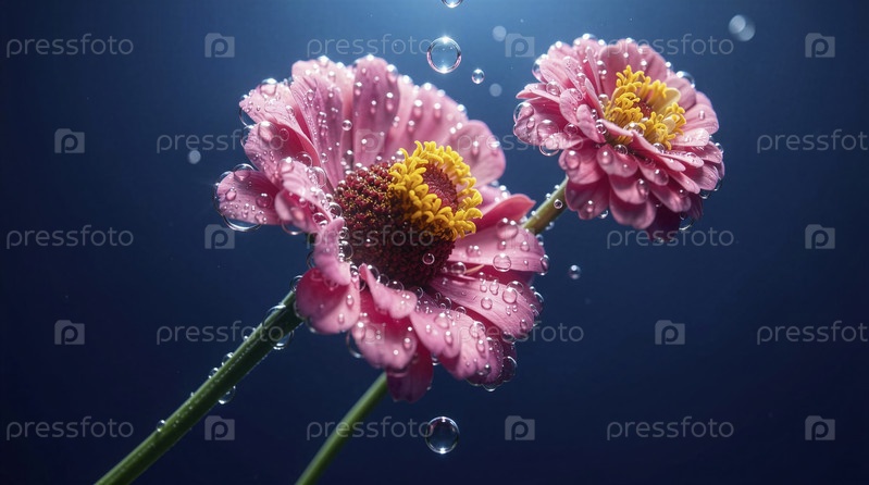 Водой пропитанные розовые цветы в глубине