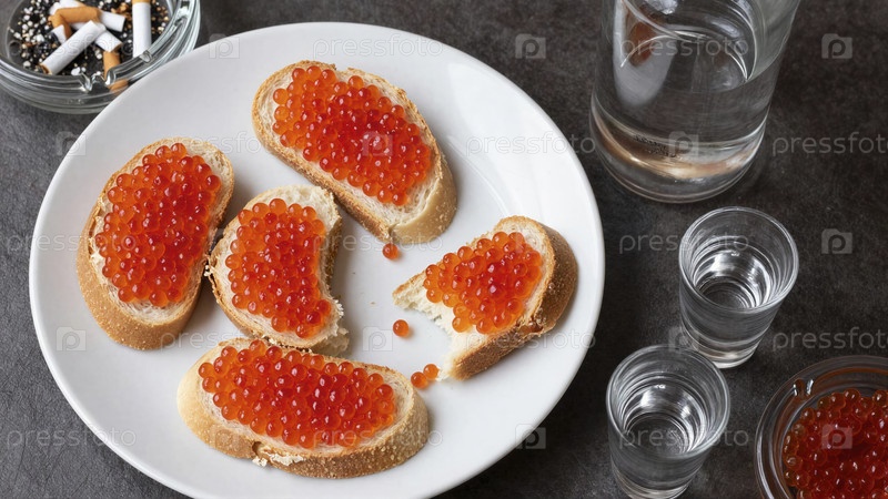 Красные тосты из икры с водкой