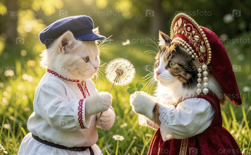 Причудливые кошки в костюмах делятся особым моментом