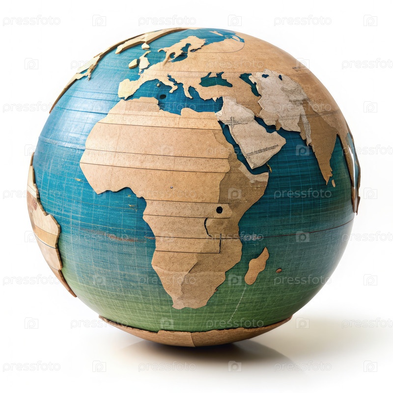 Картонный глобус, изображающий Африку и Европу на белом фоне