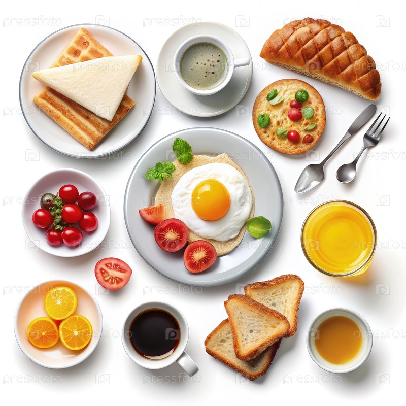 Вкусная аранжировка завтрака на белом фоне