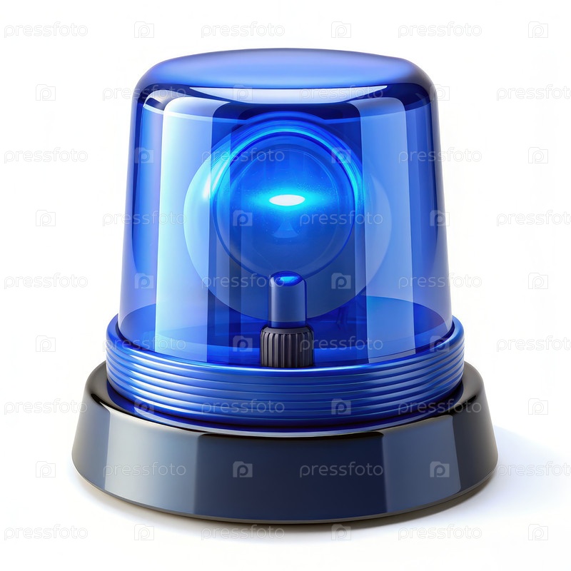 Синий мигающий сиренный свет изолирован на белом фоне