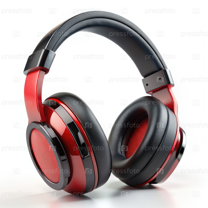 Красные и черные наушники, изолированные на белом фоне