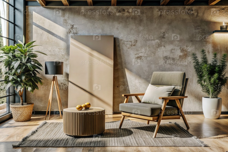 Минималистский дизайн интерьера с мокапом полотна и естественным светом