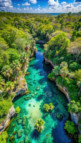 Вид с воздуха на подземную реку Sac Actun в Мексике