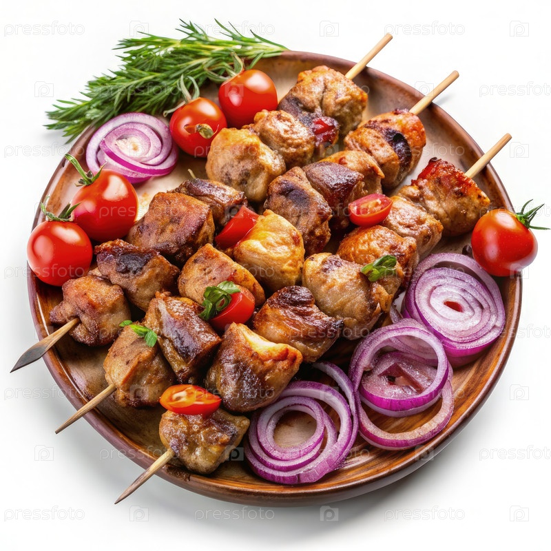 Гриллеры Шашлик с помидорами и луком на тарелке