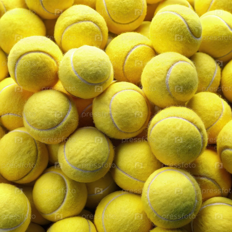 Куча желтых теннисных мячей, готовых к игре