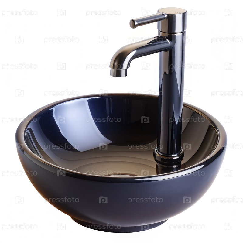 Хромный кран на черной раковине для судов