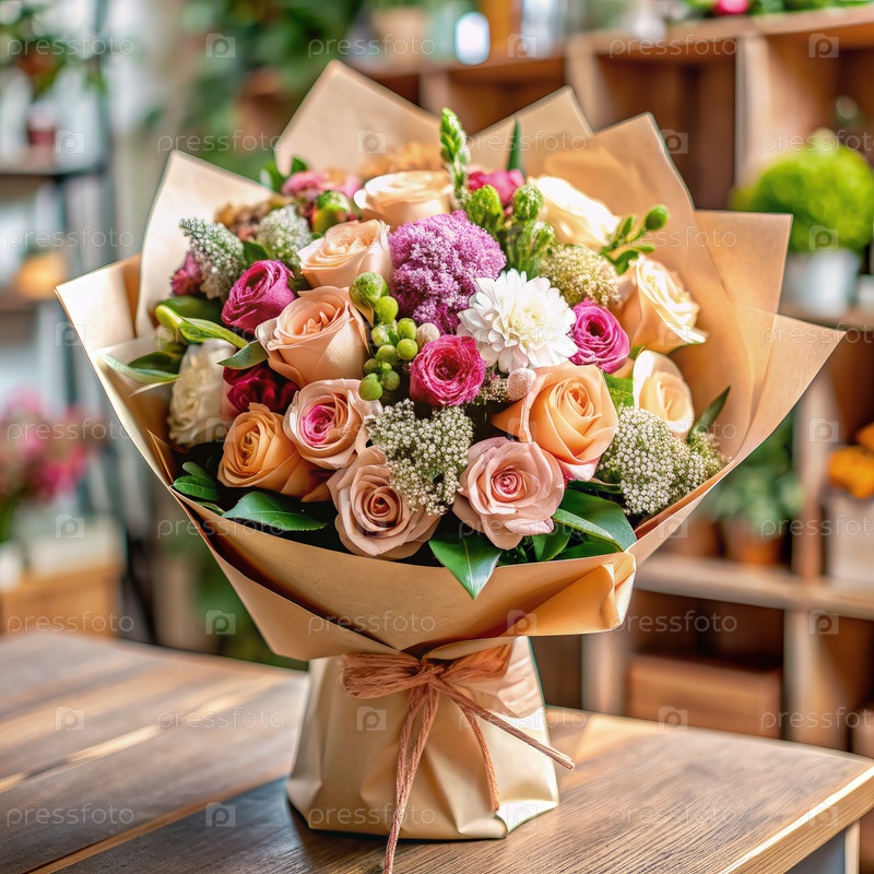 Свежеустроенный букет роз и цветов на продажу в цветочном магазине