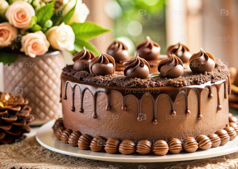 Декадентный шоколадный рождественский торт с сытым ганаче
