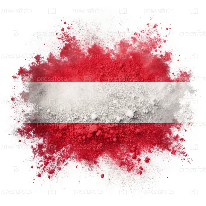 Австрийский флаг сформирован красно-белым взрывом порошка на белом фоне