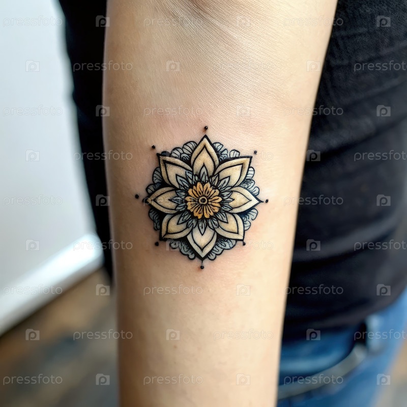 Подробная татуировка Маленькой Мандалы на предплечье человека