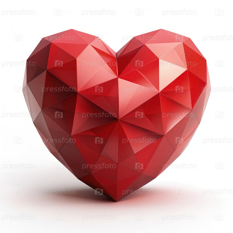 Низкая поликрасная форма сердца на белом фоне