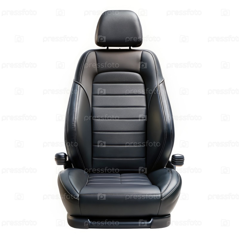 Черное кожаное автокресло с головной укладкой, изолированное на белом фоне