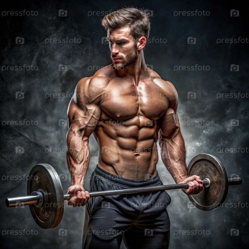 Мускулистый мужчина поднимает тяжести на задымленном фоне