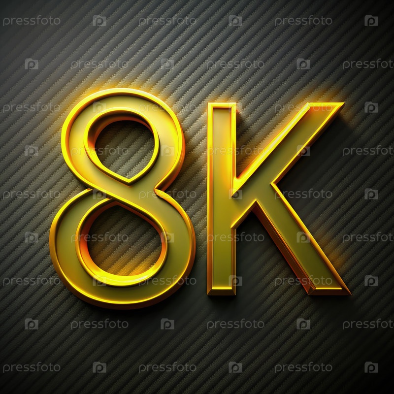Золотой текст 8K, отображаемый на полосатом фоне