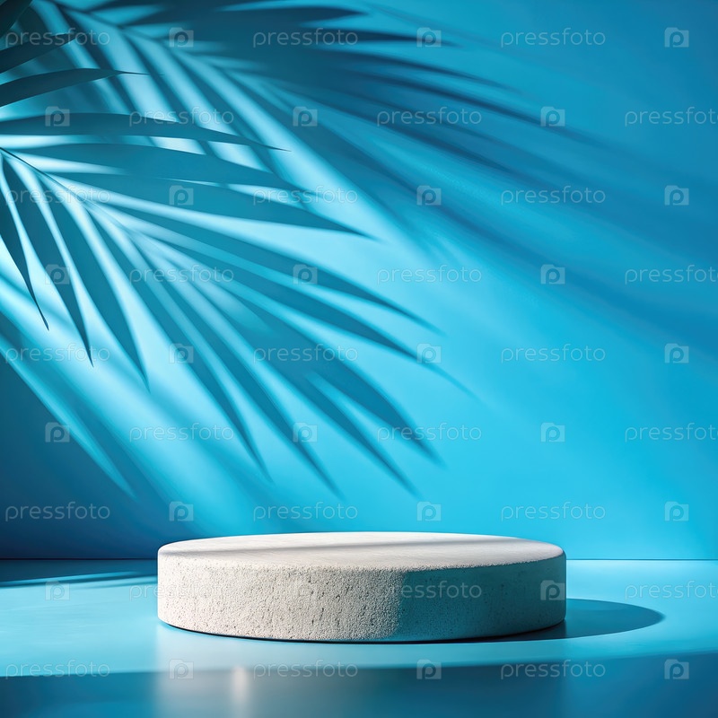 Подиум из белого камня с пальмовой тенью на синем фоне