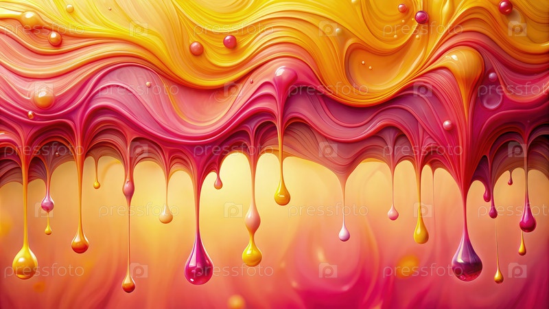 Abstract Розовая и желтая жидкость, качающаяся с каплями воды. генеративный ИИ