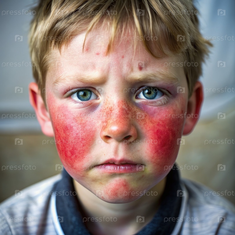 Близкий портрет молодого мальчика с красным, опухшим лицом