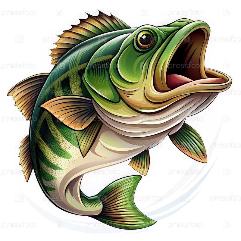 Мультфильм Басс-рыба Векторная иллюстрация для дизайна футболки. генеративный AI