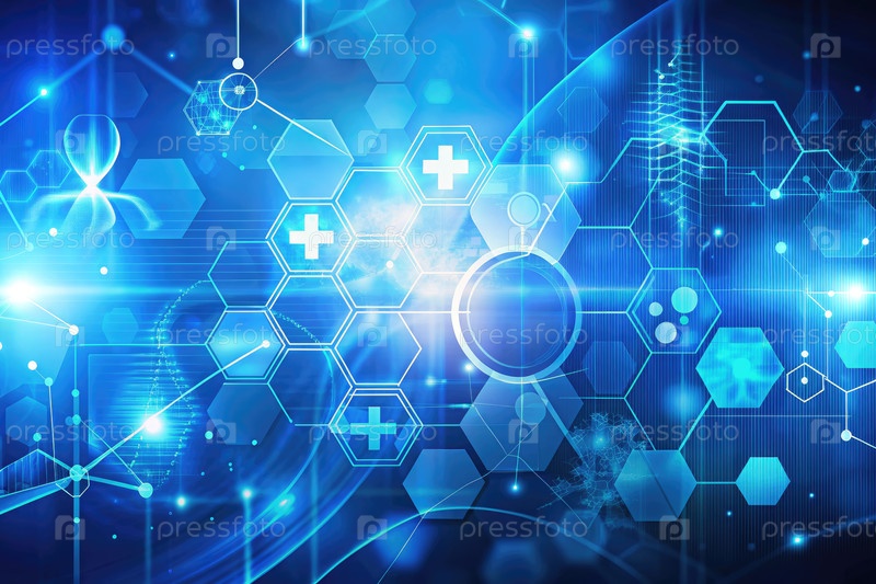 Футуристическая медицинская технология абстрактный фон с шестиугольным рисунком и знаками плюс. генеративная ИИ